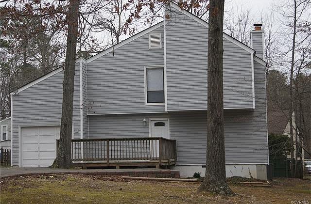 New Roof! Newer Heat Pump! (3 years old) Fresh Interior Paint! Vinyl Siding! Garage! Excellent Schools! Large Great Room W/Hardwood Floor, Brick Fireplace, & 4 Windows! Eat-in Kitchen W/Large Opening to Great Room! Comfortable Master Bedroom W/Large Walk-in Closet & Direct Access to Renovated Full Bath! Full Bath has Large, Attractive Newer Vanity W/Double Sinks, Large Mirror, Ceramic Floor, & Newer Tub Enclosure! (There is a Separate Area for the Tub & Toilet!) All Bedrooms are Good Size W/2 Windows! 2nd Bedroom also has a Very Large Closet! Spacious Upstairs Laundry W/Skylight, Shelving, & Clothing Rod! Lots of Ceiling Fans! Large Front & Rear Decks! Paved Drive W/Extra Parking Area! Walk-in Attic Storage! Open Stairway W/Landing! Motion Flood Lights at Driveway! Great Convenient Location in Midlothian! (Close to Everything!) Neighborhood is Secluded without Through Traffic! WOW! ! !