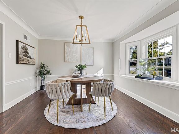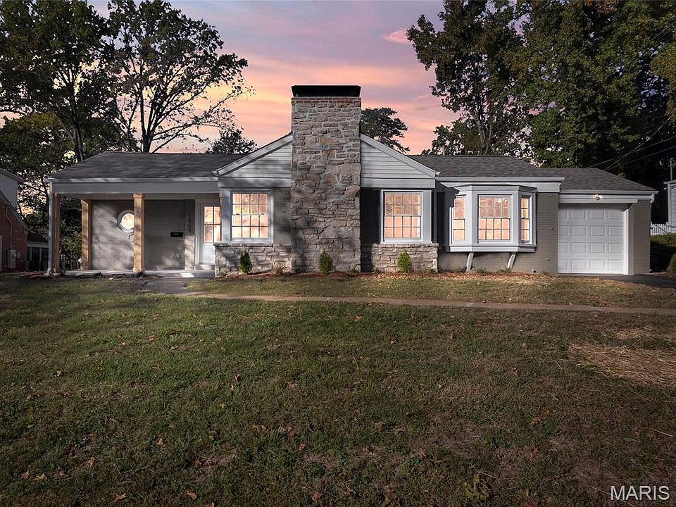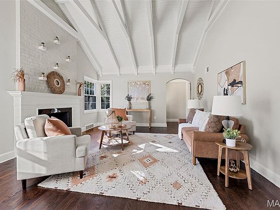 Charming Webster Groves Renovation! This beautifully updated home blends modern comfort with the timeless character Webster Groves is known for. Enjoy stunning curb appeal with a (non functioning) stone fireplace ( perfect for easy ventless gas insert in the future or cozy candle accent). The beautiful covered front porch with cedar posts greet you as you enter. The stunning vaulted, planked great room is filled with natural light with multiple new windows, built-in book cases. Illuminating front door showcases the gorgeous gleaming hardwood floors. A charming bay window brightens the dining area with arched entryways and coved molding. Enjoy the completely remodeled kitchen featuring stylish finishes, new appliances, soft close cabinetry, gorgeous countertops. Two spacious bedrooms and a tastefully updated full bath create a serene retreat. The fresh, clean lower level provides excellent storage options with potential for additional living space. The oversized tandem garage offers parking for two cars—or plenty of room for hobbies or additional storage. New Roof 2025, New siding/soffit/fascia 2025, New windows, New Doors, New fixtures and flooring, Updated electric panel 2025, water heater 2025, New furnace installed 2025, updated A/C, freshly painted inside and out! Sewer lateral has been cleared and scoped without breaks! Permits were pulled and approved with Webster Groves and occupancy will be supplied prior to closing! Move in and enjoy. Step outside to a large, level backyard with patio and endless possibilities. Plenty of room for a future room addition if desired! Nestled in a desirable highly sought after Webster Groves neighborhood, this rare find is ready to welcome its new homeowners!