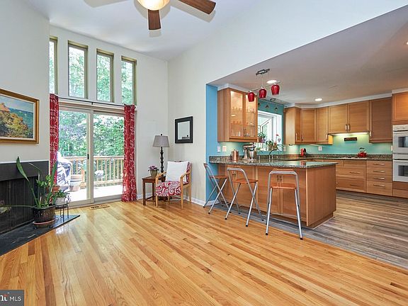Spacious contemporary 4 level townhome backing to trees! Updated kitchen opens to family room with cathedral ceiling , wood burning fireplace and sliding glass door to private deck. Hardwood floors throughout. Large private front patio perfect for entertaining. Walkout basement with 5th bedroom also can be used for storage. Two assigned parking spaces, one covered. Separate storage shed. Steps away from Lake Anne!