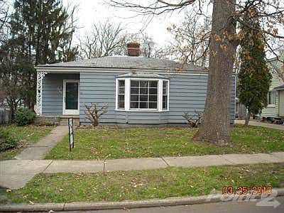 Exterior Features: Exterior: Home's exterior looks to be in overall fair condition. Siding: Light purple with white trim, fair condition. Windows: Intact. Soffits and Eaves: Intact. Patio/Porch: Small concrete porch with overhang. Roof: Asphalt shinlge, shows no sign of major damage, fair condition. Driveway: Yes, concrete. Garage: No. Interior Features: Interior: Home's interior looks to be in overall fair condition. Living Room: Room has nice built-in cabinets around the fire place, wood panel walls, and gray carpeting that looks to be in good condition. Dining Room: Room is large in good condition with a bay window. Kitchen: Nice looking kitchen, complete with linoleum flooring, cabinets, counter-tops, sink and appliances. Bathroom: A portion of the wall and ceiling has been damaged from what looks to be water in one corner. Complete with sink, cabinets, toilet and tub/shower. Bedroom: (1) Room has white walls and brown carpet, in fair condition. (2) Light blue walls with white trim and brown carpet. Basement: Unfinished, concrete floors and brick walls. Mechanics: Furnace, all others are unknown.