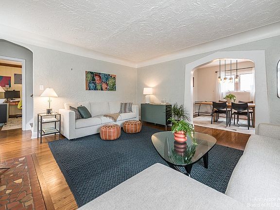 This is perfection in Lower Burns Park. 1671 square feet. 3 beds. 1 baths. Completely renovated kitchen with granite countertops, stainless appliances, 5-burner gas stove and tile floor. Original details have remained - crown molding, trim, archways and hardwood floors throughout the first & second levels. Open, light-filled floor plan, with formal dining room, large living room, back study or family room plus a heated screened porch overlooking the backyard. Second floor full bath renovated with quartz countertop and reglazed original tub with tile surround. Basement was finished by Forward Design in 2018 - family room area featuring a chalkboard wall and a huge laundry space. One-car detached garage with workshop space and extra storage. Sellers have never used the fireplace and do not warrant its condition. New Roof & Updated Electrical (2016). New side-by-side (not shared) Driveway & Hot Water Heater (2017) New AC (2020). Walk or bike to everything from here - Central Campus, Downtown A2, The Big House, Law, Business & Medical Schools, shops, coffee, restaurants, theatres, Art Fair, and Burns Park, Tappan & Pioneer public schools. Great location!, Rec Room: Finished
