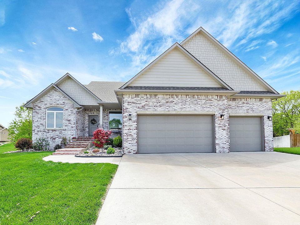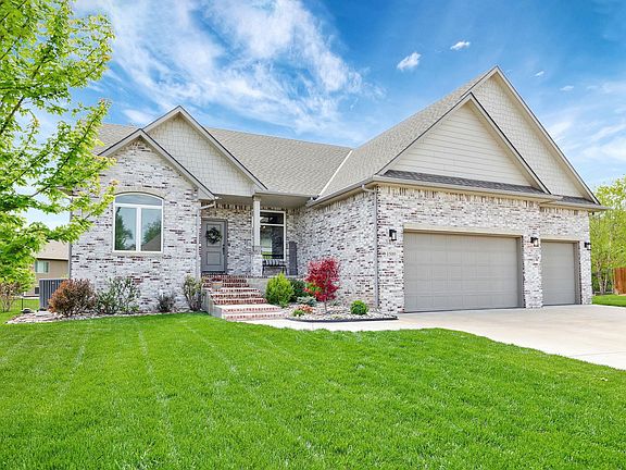 Gorgeous Ranch in the popular Blackstone subdivision. You'll love all the space this 5 bedroom, 3 bath, 3 car garage home has to offer. Located on a large .40-acre lot, this lovely home is "like new" and shows true pride of ownership. The Blackstone Subdivision boasts Maize schools, stocked lake & ponds, walking paths, swimming pool and a fun welcoming neighborhood. So much to love; spacious mainfloor living areas, open floor plan with beautiful white woodwork, stylish lighting and hardware, wood floors, tile in bathrooms, gas fireplace, vaulted ceilings & loads of windows throughout. The kitchen is the focal point with beautiful white cabinets, stainless steel appliances including; refrigerator, stove, microwave & dishwasher and don't miss the pantry. The home also has a central vac system making chores a breeze. The master bedroom features easy flow from bedroom to bath to walk-in closet to laundry. You'll appreciate the separate double vanities, shower and soaker tub. Three bedrooms on main level. Make your way to the lower level where you will find a large family recreation room with view out windows, an awesome wet bar, two more bedrooms, a large 3rd bath and an organized storage room. Interact with your fantastic neighbors and relax at your inviting front porch or enjoy some quiet time at your covered back deck. This home includes an irrigation well, sprinkler system, rocked flower beds and an established lawn. The garage has been extended an additional 2 feet creating more space for vehicles and storage. This home's specials also pay off in 2024 just adding to the list of items making this home so fantastic! All information is deemed reliable but not guaranteed. Buyer and buyers agent to verify all important information. Room sizes are estimated.