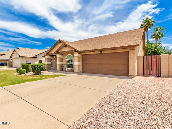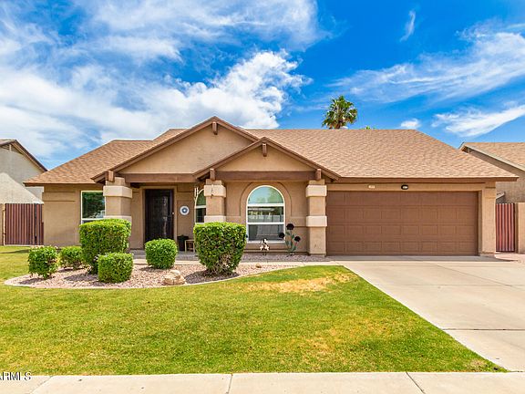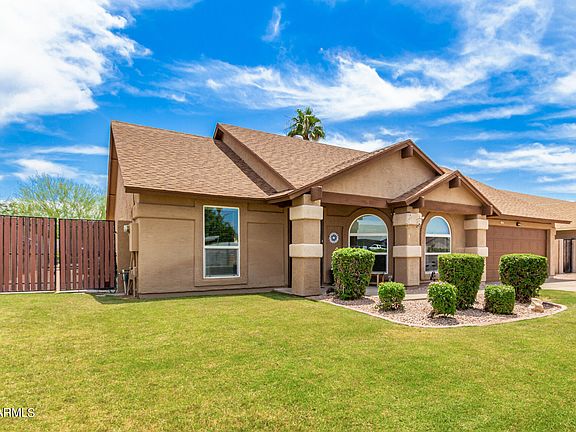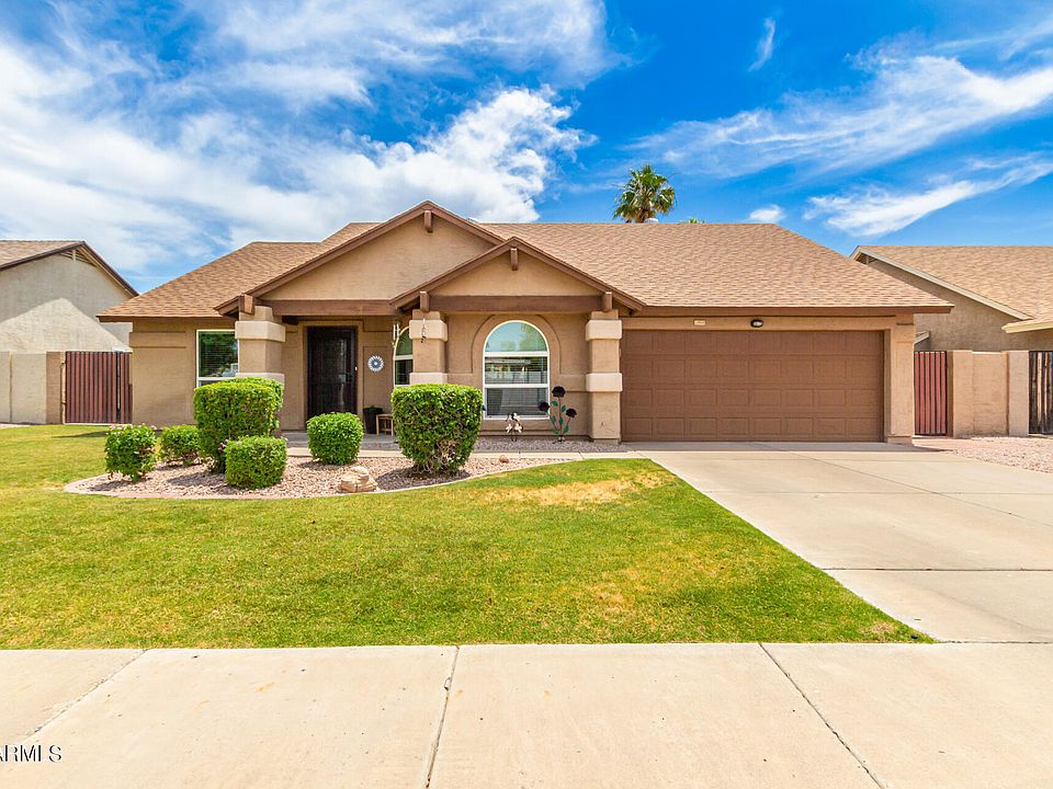 Check out this gorgeous home in Mesa! No HOA! Sweet curb appeal, grassy front yard, RV gate, 2-car garage, and welcoming porch. Discover a luminous great room with vaulted ceilings, fireplace, and wood-look tile flooring throughout. The eat-in kitchen showcases stainless steel appliances, a pantry, ample counters, white cabinetry, and a pass-through window with a breakfast bar for casual breakfast. Split floor plan! Master bedroom has a bathroom with a tiled shower, dual sinks, and a walk-in closet. Host fun gatherings in the beautiful backyard comprised of green grass, a blue pool/spa combination, and a cozy covered patio. No neighbors behind you! Don't let this home slip by!
