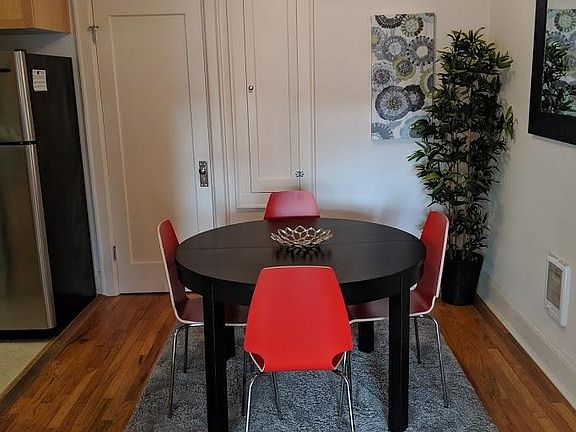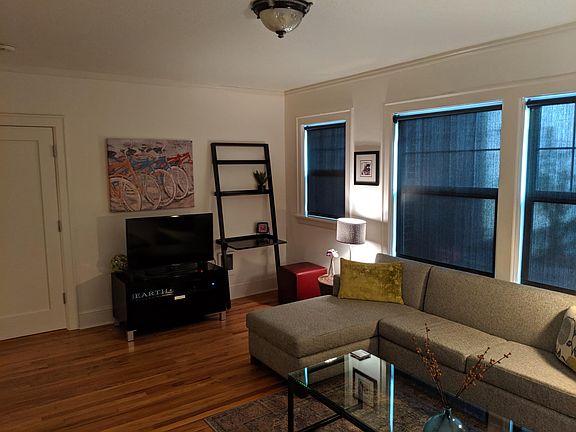 This Furnished studio unit has hardwood floors, a modern kitchen with stainless steel appliances, dishwasher and granite counter tops. Bathroom has a tub/shower combo. The built in FULL SIZE wall-bed (tempurpedic mattress) provides for a comfortable living space. The condo has a walk- in closet and washer/dryer in the unit. Amenities include; fully stocked kitchen, all utilities, Wi-Fi, 40" cable TV with with Netflix. Walk to everything, local cafe's, restaurants, Starbucks, Peet's Coffee, Safeway, LA Fitness and The Lloyd Center and the convention center. The convention center is a 4 min drive or a 15 minute walk. The Max line that goes to the airport and downtown is 3 blocks away. The Street Car 3 blocks away, goes to the Pearl District. Deposit: $700. Parking: On-street parking only. There is free parking half a block away and 5 hour meter parking in front of the building 8:00am to 6:00pm. Sorry, no pets. Month to Month, with a minimum 30 days.