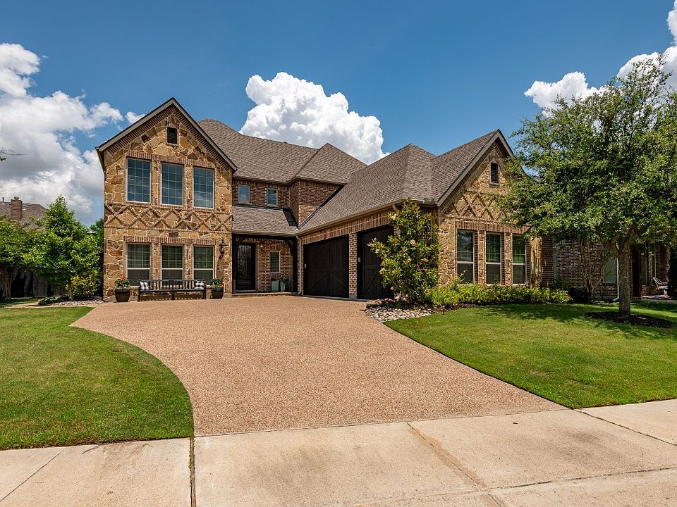 Price drop of $10,000! Sellers willing to negotiate! Zoned for Keller High School, the home boasts hand scraped wood flooring, lots of natural light, a stately kitchen, and a master suite sure to amaze. The master shower is one of a kind with open entry on 2 sides, with dual shower heads. You also get a full guest suite on level one. Best of all is the wonderful covered, stone floored, outdoor living area. The gabled roof, fireplace, and mounted TV will keep the party outside for hours, with minimal yard maintenance. The kitchen, and large open pergola help make this backyard a must to have. There is even a water fall and small stream built in. Don't be afraid of mosquitos because there is an outdoor misting system. The upstairs houses the secondary bedrooms, along with both a large game and media rooms. Need an extra space for a new driver in the family, or that boat? The oversized 3 car garage will fit the bill. Minutes from Keller High, and dining options.
