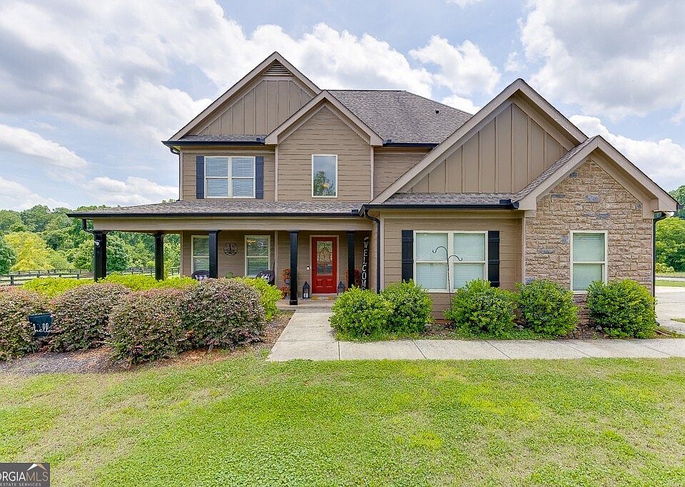 MAJOR PRICE IMPROVEMENT JUST IN TIME FOR THE HOLIDAYS! Welcome to this beautiful Craftsman-style home in the highly sought-after Finch Landing subdivision! Built in 2019, this charming two-story residence sits on a generously sized 0.75-acre wooded lot, offering privacy and serenity with a rocking chair front porch perfect for relaxing evenings. Inside, you'll find an open-concept floor plan featuring rich hardwood flooring, a wood-burning fireplace, and a spacious separate dining room ideal for entertaining. The heart of the home is the kitchen, boasting custom-built cabinetry, granite countertops, and modern finishes throughout. Upstairs, the large owner's suite provides a peaceful retreat with a luxurious bathroom that includes a garden tub, separate shower, and granite vanity countertops. Additional highlights include upgraded wall-to-wall carpet, quality craftsmanship, and attention to detail in every room. This home qualifies for 100% USDA financing.