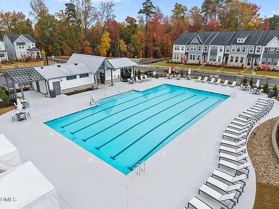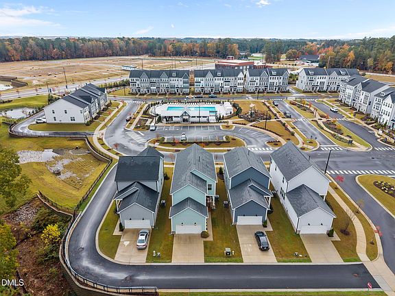Discover luxury living in one of Knightdale's most desirable resort-style communities—where every day feels like a getaway. This better-than-new 4-bedroom, 3.5-bath, 2,717 sq/ft custom single-family home sits in a prime location directly across from the community resort-style pool with cabanas, playground, and just steps from scenic community trails that wind behind the home. Inside, you'll find a beautifully designed, open-concept layout that's been lightly lived in and impeccably maintained. The main floor features a spacious private office / flex room, upgraded eat-in kitchen with quartz countertops, high-end appliances, and a large island overlooking the family room—ideal for entertaining or cozy nights in. A covered rear porch offers a peaceful spot to unwind with privacy and nature views. Upstairs, the elegant primary suite is a luxurious retreat, complete with a large walk-in closet, dual vanities, a spa-like shower with seat, and a private water closet. The generous loft provides flexible living space for a second family area, media room, or play zone. Three spacious secondary bedrooms include two with walk-in closets—one with its own private bath. Additional highlights include a convenient second-floor laundry room, powder room on the main level, ample storage, and a two-car garage. With top-rated public and private schools nearby and an unbeatable community atmosphere, this stunning home offers the best of luxury, location, and lifestyle. Perfectly positioned just a mile to downtown Knightdale's shopping and dining, minutes to Raleigh, and less than 30 minutes to RDU Airport and Research Triangle Park, this home combines elegance, comfort, and convenience.