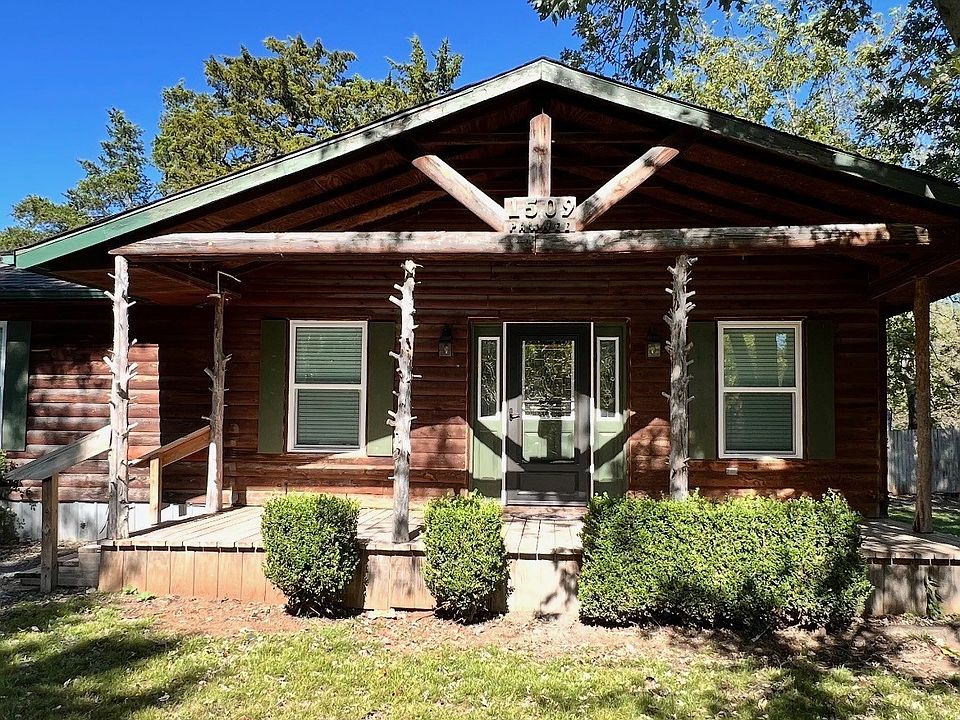 CABIN STYLE CUTIE IN HARTSHORNE!! 2 ROOMY BEDROOMS AND 2 BATHROOMS (BOTH WITH TILED WALK-IN SHOWERS!). ALSO A BONUS ROOM A TWIN BED WILL FIT IN!! FIREPLACE AND VAULTED CEILING IN THE LIVING AREA AND GRANITE COUNTERTOPS IN THE KITCHEN AND BATHS!! THE KITCHEN FEATURES BUILT IN DOUBLE OVENS, GLASS RANGE TOP, NEW DISHWASHER INSTALLED 2025, AND BUILT IN MICROWAVE!! WATER HEATER INSTALLED NEW IN LATE 2024!! ALSO, LOTS OF CROWN MOLDING ADDING TO THE APPEAL OF THIS QUAINT HOME!! COVERED FRONT AND COVERED BACK PORCHES GREAT FOR ENJOYING COOL MORNINGS AND EVENINGS!! ALL OF THIS ON A CORNER LOT WITH AN ADDITIONAL ADJOINING LOT INCLUDED, MAKING THIS JUST SHY OF A HALF ACRE(.46 ACRE PER COURTHOUSE)!!LOCATED ON THE EAST END OF TOWN JUST A FEW BLOCKS NORTH OF US 270 AND THE HARTSHORNE BUSINESS DISTRICT!!