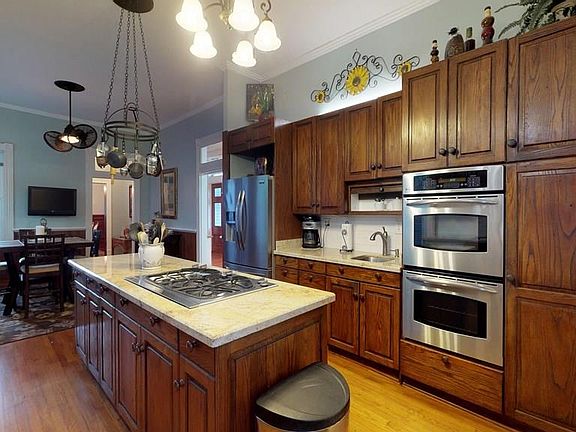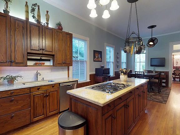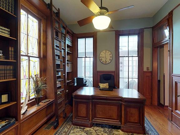 Beautifully maintained Issac Heffron House is a 4-bay, urban Victorian home situated in the Historic East End District. Notable late nineteenth century features of this home include a two story tri-partite bay window, turned columns and transom windows. Impressive floor plan includes formal living, formal dining, parlor and private study with built in Parana Pine bookcases. Original wood flooring, pocket doors, detailed mill-work, 10-12 foot ceilings and elegant chandeliers throughout. Updated kitchen offers granite counters, stainless appliances, prep sink and island cook top. Downstairs bathroom is complete with attractive claw-foot tub. South facing sun room overlooks the courtyard that is perfect for outdoor entertaining with brick pavers, extended concrete patio and detached 2.5 car garage. CONTACT AGENT FOR EXCLUSION LIST.