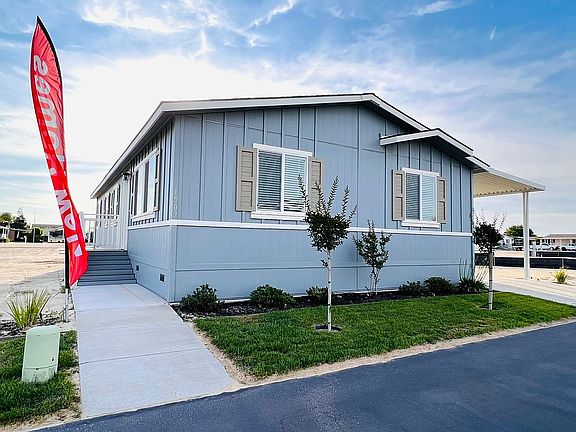 Brand new manufactured home in a beautifully landscaped, gated adult 55+ community. This charming three-bedroom residence features two full bathrooms, a beautiful kitchen with built-in appliances, a recessed living room ceiling, and central heating and air conditioning. All homes in Monte Cristo Community include front-yard landscaping, 40 ft carports with an 8x12 storage shed. Amenities include a spa and swimming pool, a newly remodeled clubhouse with a kitchen, an exercise room, and a conference room.