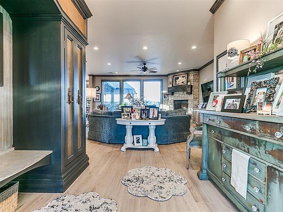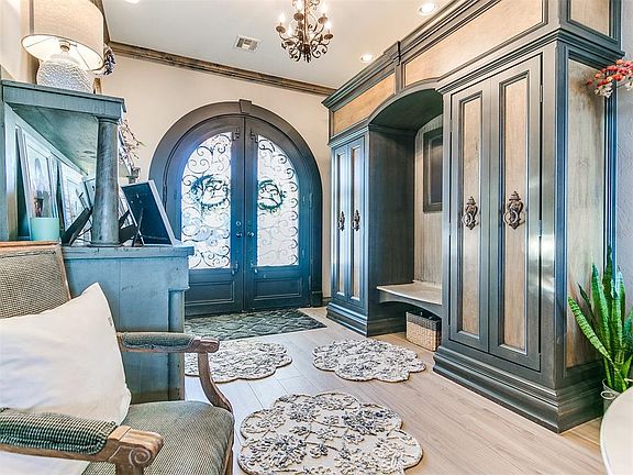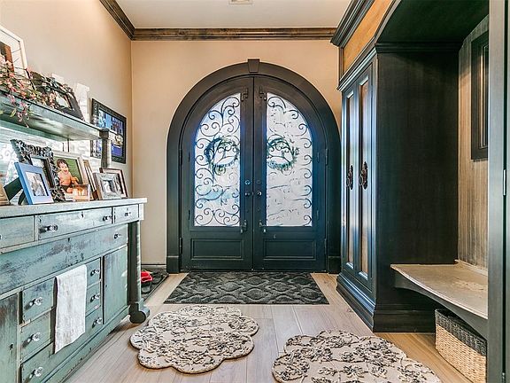This one is a beauty, one of a kind custom build that leaves nothing to be desired. Located in the sought after Willows Addition where new listings are rare. The home has every detail thought out from the open floor plan, upstairs bonus room, chefs dream kitchen, tons of storage, and built-ins throughout. The entry has a large Armoire and direct view through the living room of the back patio and in ground saltwater pool. The chefs kitchen has a commercial grade Thermadore range, Miele steam oven, Electrolux commercial side by side fridge/freezer, Kitchenaid stand alone ice machine, additional sink in the island, wine rack, wine fridge, and built-in closet door containing large stained glass (believed to be pulled from an OKC church) for dish storage. Being in Moore you can rest easy with a walk-in storm shelter/safe room. Some of the built-ins include large entry Armoire, living room audio cabinet, dining room cookbook bookcase, primary bath Armoire and additional cabinets, laundry room sewing station, wrapping station with large built-in storage, pantry spice rack and large shelved area, and powder bath with large storage closet. Most of the first floor has new flooring in 2023, the entire home is wired with 1G ethernet, and it has 2 on demand gas water heaters. The 3 car garage is oversized with 8ft doors and large workshop area, they also have a pad for trailer storage behind the fence. Exceptional home, exceptional neighborhood, and an exceptional location! What more could you ask for?