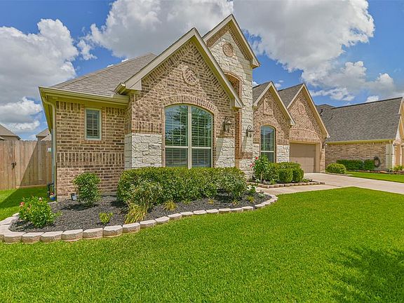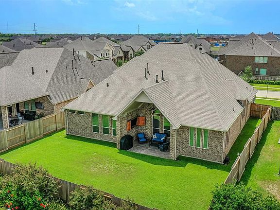 Gorgeous 1.5 story home built by Village Builders. Open family room and large island kitchen are the heart of the home and perfect for casual family gatherings as well as entertaining. Home offers 4 bedrooms and 3 full bathrooms down plus a game room and full bath up. Also, on the first floor you will find a study with French doors, an elegant dining room and large utility with mudroom. Primary bedroom with bathroom including a corner tub, large shower, dual sinks plus an amazing large closet. Kitchen with double ovens, beautiful granite counter tops, a large walk-in pantry plus a butlers pantry. Extend covered patio with tile floor, gas connection and wall-mounted TV, staying with the home and a large enough yard to add a pool if desired. Low tax rate and award-winning schools and walking distance to the new Cline elementary opening in fall 2023. Community offers plenty of walking area plus neighborhood parks and pools and easy walk to Friendswood Lake and all it has to offer.