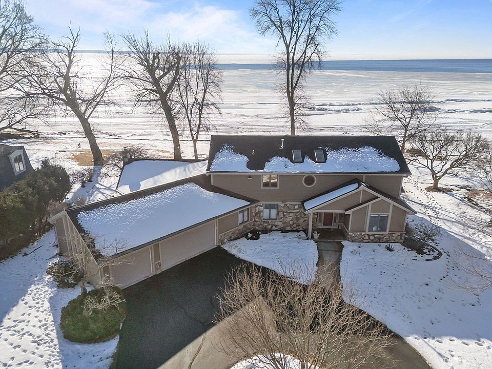 Discover unparalleled views of Lake Winnebago at this property. Situated on almost an acre with 120+/- feet of sandy beachfront, the tranquil park-like environment is truly exceptional. Nearly every room in the house offers breathtaking vistas of the lake. The expansive kitchen features a large island and seamlessly transitions into the cozy family room with a gas fireplace. Enjoy your morning coffee by the 3-way fireplace in the sitting area. The first floor includes a family room and office, while bedrooms on the second floor provide privacy. A 3-car garage with epoxy floor and ample storage, along with a pavered patio for outdoor gatherings, enhance the appeal of this vacation-like retreat.