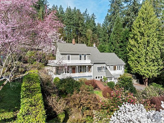 OFFER RECEIVED // DEADLINE WEDS 4/2 12:00PM // Step into this idyllic 1900 farmhouse, meticulously remodeled to preserve its original architectural charm while offering modern conveniences. Nestled on a fully landscaped and manicured 0.6-acre corner lot, bordered by a mature laurel hedge for privacy, this property is a rare gem in the heart of Dunthorpe. Blooming magnolias and camellias provide four seasons of color throughout the serene gardens, complemented by brick pathways and a picturesque duck pond.The main house offers 4 bedrooms and 2.5 bathrooms, including a spacious primary suite featuring vaulted ceilings, a large walk-in closet, bonus space ideal for a second walk-in closet or yoga room, a charming bathroom with a claw-foot soaking tub, and a private balcony overlooking the stunning front gardens. Throughout the home, you'll find custom built-ins and thoughtful details that blend timeless elegance with modern functionality.The updated kitchen is filled with light from expansive picture windows framing views of the lush gardens and is outfitted with custom Simon Toney Fischer cabinetry and built-in stainless appliances. Multiple patios and wrap-around balconies encourage indoor-outdoor living and are perfect for entertaining or quiet mornings surrounded by nature. Updated electrical, plumbing, and systems provide peace of mind while preserving the home’s authentic character.A detached, modern ADU offers a versatile space with a loft-style bedroom, full bathroom, kitchenette, ample natural light, and a cozy fireplace — ideal for guests, extended family, or working from home. Additional features include a private back courtyard with a built-in BBQ, wine cellar, garden shed, storage area, and plumbing ready for a hot tub.Located within the coveted Riverdale School District, with Riverdale High School recently ranked the #1 public high school in Oregon by Niche.com, this home offers peaceful living with unbeatable charm and location.