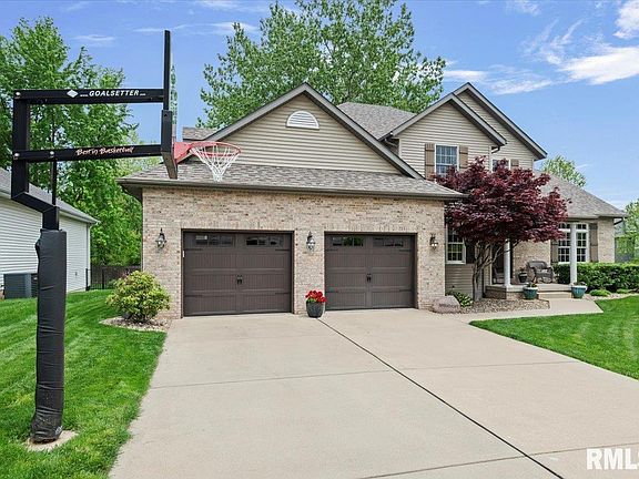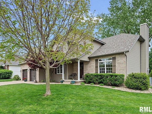 Welcome to this incredible 2story home w/impressive curb appeal & an equally stunning interior loaded w/updates & thoughtful design. A warm, inviting foyer w/natural light & rich hardwoods set an elegant tone as you step inside. From there, a formal living room & it's striking floor-to-ceiling stone fireplace is in an open concept w/ a recently remodeled kitchen. High-end Electrolux SS appliances & stylish tile backsplash surround an island w/bar seating while an adjacent eat-in nook steps onto dual-level deck out back. True formal dining boasts crown moulding, tray ceiling & more warm HW flooring, while an office, half bath & laundry add practicality at every turn. Enjoy a deluxe primary suite w/ amazing perks like a jetted tub, separate shower, dual vanity & big walk-in closet. Joined by 3 additional BRs & a hall full bath, the upper level presents private family quarters while a mostly finished bsmt adds more living space! The huge family room w/lovely built-ins is open to a tiled, custom bar space with a 3rd full bath nearby & an entire Sauna room waiting like a cherry on top! Enjoy the dual-level deck & sprawling backyard w/beautiful views, all enclosed by invisible fencing that's included for pet owners. The 3-CAR (tandem) garage has all new doors & openers alongside generous storage & workshop space & the furnace & A/C were new in 2017. You'll find this gem in the highly desired Lake Pointe Subdivision, minutes from city amenities, interstate access & Lake Springfield!
