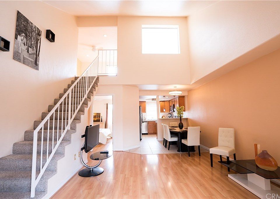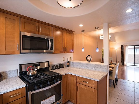 This beautiful two-story loft style condominium holds two bedrooms and two bathrooms amidst 942 square feet of living space. Vaulted ceilings provide an open and spacious atmosphere. There are tiled floors throughout the kitchen, dining area, entryway and bathrooms, and laminate flooring in the living room and bedrooms. The kitchen was recently remodeled with new cabinets, quartz countertops, and stainless steel appliances gas stove, microwave, & dishwasher. Both bedrooms have ceiling fans and ensuite restrooms. The patio access through the living room shows courtyard views, while the balcony through the upstairs bedroom shows southern city views. This unit has hookups for your own washer and dryer within the spacious laundry room, alongside plentiful storage shelving and a brand new water heater. Built in 1990, the Palm Oasis community is Mediterranean styled, with courtyard seating, an outdoor BBQ area with tables and chairs, laundry facilities and a private secure access subterranean garage with 2 tandem parking spaces. It is centrally located near the 405 freeway, PCH, Long Beach Airport, the historic Long Beach Traffic Circle, multiple public parks, and great dining and shopping locations.