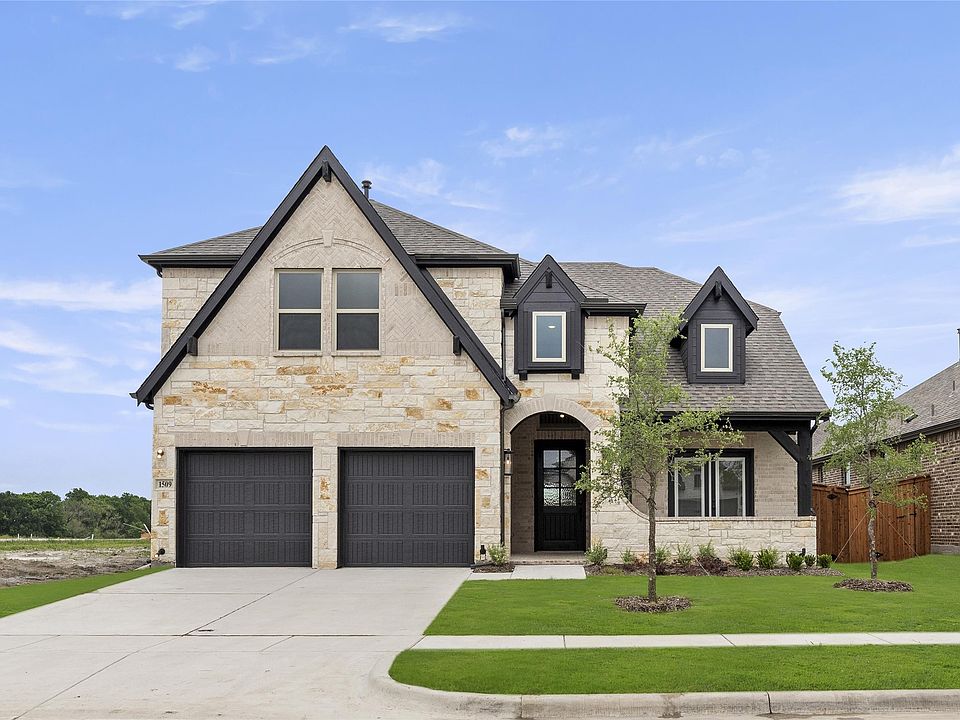 MLS# 20594549 - Built by First Texas Homes - Ready Now! ~ Welcome home to your absolutely stunning home!! This home has curb appeal with upgraded elevation with white brick and stone, porch, oversized front door, French doors from study to porch. Gorgeous, upgraded kitchen with Calacatta Rafael Quartz at kitchen, black farm sink, cabinets to the ceiling, chef's kitchen with double oven and 5 burner gas cooktop, open to family room. Perfect for entertaining friends or family! Extended covered patio just off of kitchen-dining. Luxury vinyl planks throughout first floor. The list goes on and on!