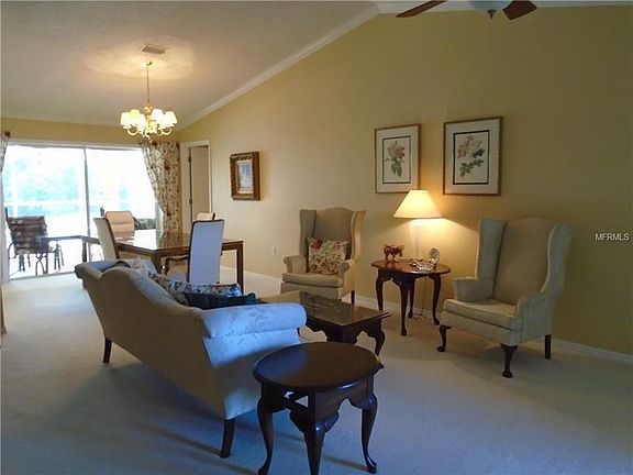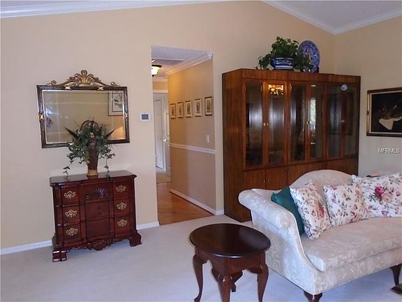 Absolutely model perfect! Once you enter into the foyer you have vaulted ceilings in the formal living & dining rooms w/crown molding. The kitchen has been updated with wood cabinets w/details & crown molding, pull out shelves, pot drawers, mixer shelf that retracts into cabinet, under cabinet lighting, tile backsplash w/granite counters, breakfast bar, closet pantry, stainless steel appliances, crown molding and a wonderful breakfast nook area. This kitchen overlooks the family room that has designer style laminate flooring for easy care, crown molding and plantation shutters. Down the hallway there is a large closet and a pocket door leads you into the guest bath w/updated vanity, tub w/shower. The guest bedroom is directly across and it has a ceiling fan, crown molding and a very large walk in closet. The master bedroom has plenty of room for all your pieces and two walk in closets. The master bath has been updated with dual vanities w/tower for storage and walk in shower. The laundry room is currently being used as an office and there is also a closet. The 3 car garage has pull down staircase to attic, cabinets, utility sink and washer & dryer hookup. You will enjoy the lanai that has a solar heated salt water pool w/pop up cleaning system and a tranquil view of the pond and forest! This home offers many newer items including roof, water heater, pool salt system, exterior painting, retractable garage screen, intercom system w/radio & speakers throughout the house plus more! This is a must see!