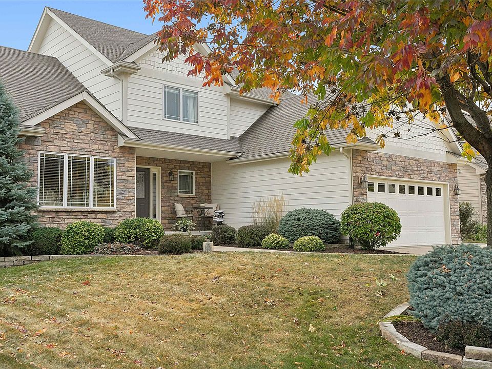 Welcome to this stunning 1.5 story home offering over 3,000 sqft of beautifully finished living space. Step inside to discover an open-concept design that still provides distinct living areas, highlighted by massive windows that flood the home with natural light and soaring ceilings, creating a grand and airy feel. The gorgeous primary suite on the main floor includes its own private coffee deck ? perfect for morning relaxation. The main level also includes an office w/ French doors and an oversized laundry room. Upstairs, you'll find 3 spacious guest bedrooms and two additional bathrooms, all centered around a show stopping staircase that overlooks the main level. Head outside to enjoy a private backyard retreat, complete with a large deck, professional landscaping, a gorgeous covered patio, a cozy fire pit, and a relaxing hot tub, ideal for entertaining. The finished walkout lower level features a sprawling family room with fireplace, a wet bar, additional bedroom & 3/4 bath, a workout room, and plenty of storage space. This home truly has it all, offering a balance of elegance and comfort in every corner!