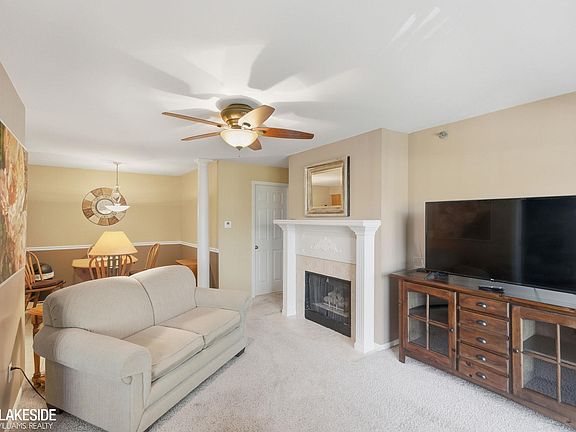 Adorable 2 bedroom condo with 2 full baths! Kitchen with oak cabinetry, tiled backsplash and stainless steel appliances. Dining area with extra storage cabinets. Living room with gas fireplace w/tiled hearth, surround and custom mantle, ceiling fan and door wall to balcony. Main bedroom with ceiling fan, walk-in closet and private full bath with tub. French doors to second bedroom currently used as den. Additional full bath with stall shower and stackable laundry area. Internal components in furnace replaced. End carport included plus guest parking. Association fee includes water, trash removal, snow removal and grounds maintenance. Hanson's door wall with fully transferable warranty. Nice location close to shopping and restaurants. One year home warranty & more!