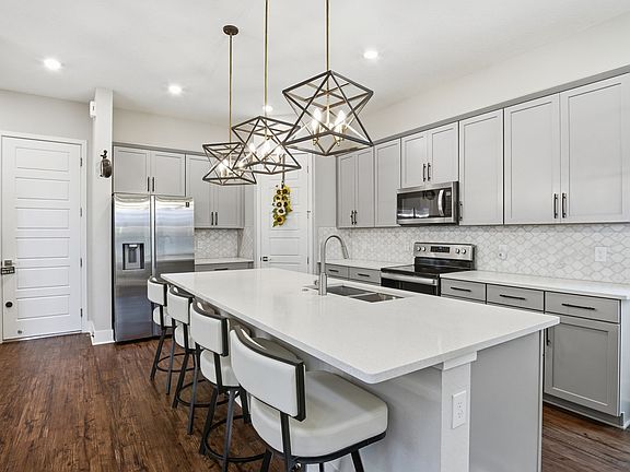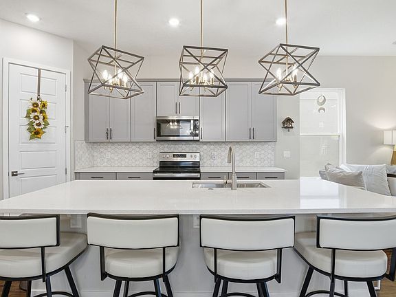 Two-car garageLarge second-floor loftQuartz countertopsTiled bathroomsWood laminate flooringStainless steel kitchen appliancesPaved driveway