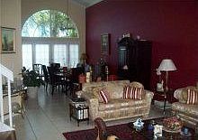 Beautiful lakefront home in a rest style community. Has small beach, lake has boat ramp for boats up to 20 feet. House has been upgraded with granite and SS appliances, crown molding, new wood floors upstairs, so many extras. Light fixtures in dining, stairs and entrance foyer are not included.