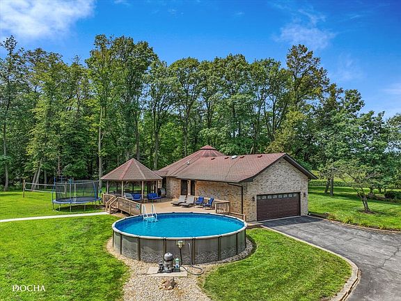 Discover Your Dream Retreat on 28 Acres! Welcome to your once-in-a-lifetime opportunity, a breathtaking brick ranch home that perfectly blends elegance, comfort, and the serenity of nature. Nestled on 28 acres of sprawling landscape, this property has never before graced the market, offering you the chance to create lasting memories in a truly unique setting. Properties unique features include 12 Acres Tillable, and 10 acres of timber helping make this the perfect dream property. The long paved blacktop driveway is lined with stunning autumn red maple trees that provide a burst of color throughout the seasons, leading you to the elegant gated entrance that ensures your privacy. Step inside this meticulously maintained 2350 sq ft brick ranch, designed for both relaxation and entertaining. Throughout the home you will find custom hardwood floors, and rounded archway giving the custom feel of this home. 3 spacious bedrooms and 3 full bathrooms plus a convenient half bath, including a fully finished basement that can make additional bedroom, this home accommodates family and guests with ease. In floor heat in the garage and fully finished basement gives you year-round comfort. The heart of the home features an open-concept living area bathed in natural light, with granite countertops and updated features throughout the home, leading to an expansive deck perfect for summer cookouts or cozy evenings under the stars. The outdoor space is nothing short of spectacular. Enjoy warm days lounging by the sparkling swimming pool or retreat to the charming screened-in gazebo, where you can savor your morning coffee while listening to the gentle sounds of your private working waterfall cascading into a beautifully stocked pond. A 45x110 partially heated barn awaits, featuring concrete flooring ideal for hobbies, storage, or livestock including a wash bay. 60 x 45 is concreted and heated additional storage in the back cold storage area that can easily be turned into area for livestock. Outdoor Livestock water system installed professionally so bring your animals. Surrounding 3 sides of the property to meet the timber, a 5-row high tinsel electric fence provides security and aesthetics, enhancing the property's appeal. Additionally, a 30x40 outbuilding offers endless possibilities-transform it into an in-law suite, home office, workshop, or even a small business. Complete with its own bathroom and heating/cooling system, this versatile space is limited only by your imagination. This home has undergone countless updates since its purchase, each enhancing its beauty and functionality. From modern fixtures to energy-efficient improvements, new flooring and carpet, you will appreciate the care and attention that has gone into making this house a true home. Don't miss this rare opportunity to own a piece of paradise. Schedule your private showing today and step into a world of possibilities! Act fast-properties like this are a rare find!