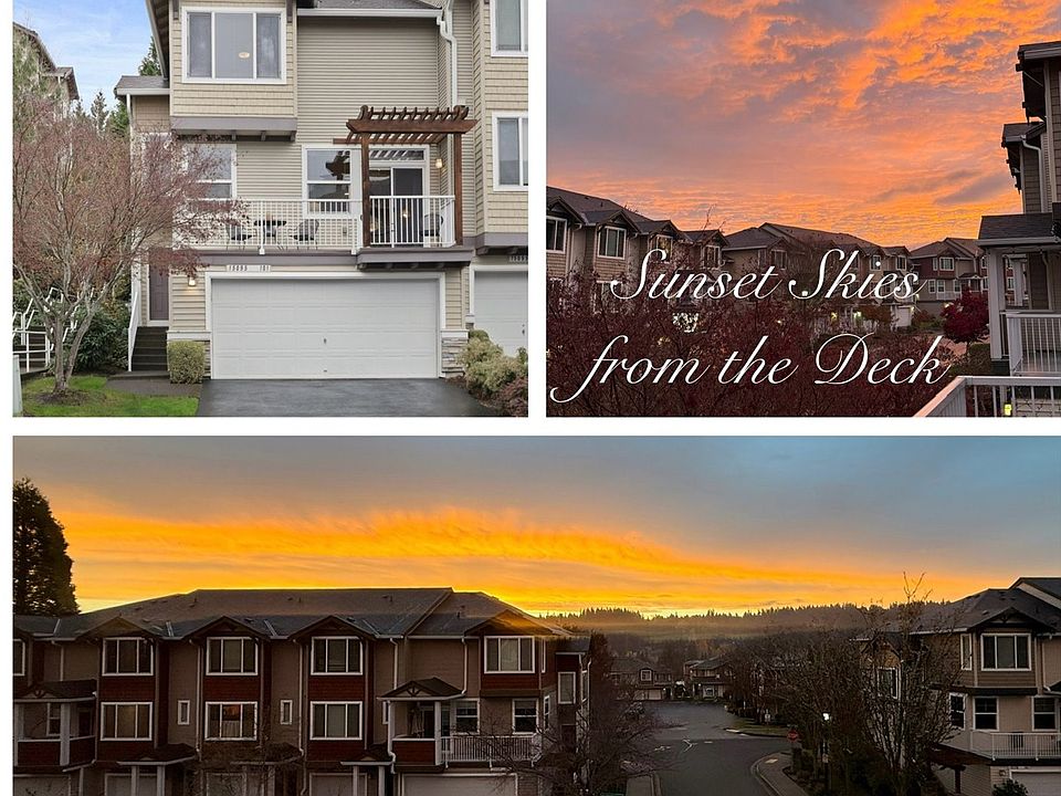 Beautiful 3-Bedroom, 2.5-Bath, 3+Car Garage Townhouse-style Condo in desirable Summit at Progress Ridge with stunning sunrise and sunset sky views. Meticulously clean, maintained and updated perfectly for a modern yet inviting comfortable vibe. Corner location allows for maximum light. Large living room with high ceilings, gallery style lighting, gas fireplace with custom tiled surround flanked by windows and slider to large deck to take in the territorial views. The living space allows for formal dining if desired, or kept as great room, as there is a large eating nook adjacent the kitchen with a slider to private and peaceful back patio. Kitchen features hardwood floors, pantry, under-mount stainless sink, newer stainless dishwasher, quartz counters, custom tiled backsplash, and updated to standard height bar counter perfect for entertaining. Spacious primary suite with walk-in closet, ceiling fan, dual sinks and a wall of windows for abundant light. Two additional bedrooms, second bath a reading nook and laundry are upstairs. Stand out feature is the oversized 3+car garage (hard to find even in detached homes in this price range) with additional bonus area unobstructed by walls offers multiple options - parking 3rd vehicle, utility trailer, small boat, shop, hobby, storage, dog kennel, or finish off for additional living or guest space. Plus, desirable double wide full-size driveway for additional parking. For buyers considering new construction in the area, this home is a must see! NEW roof, gutters and & water heater (Nov 2025). NEW furnace prior to closing PLUS seller will even offer carpet allowance with solid offer – making this home comparable to new, with added Bonus of refrigerator, full-size washer & dryer and AC already included! Solid well-established HOA with no special assessments adds additional peace of mind. Area highlights include Progress Lake, movie theatre, New Seasons, La Provence, Ava Roastaria Cafe, Shopping, and more.