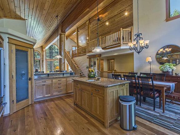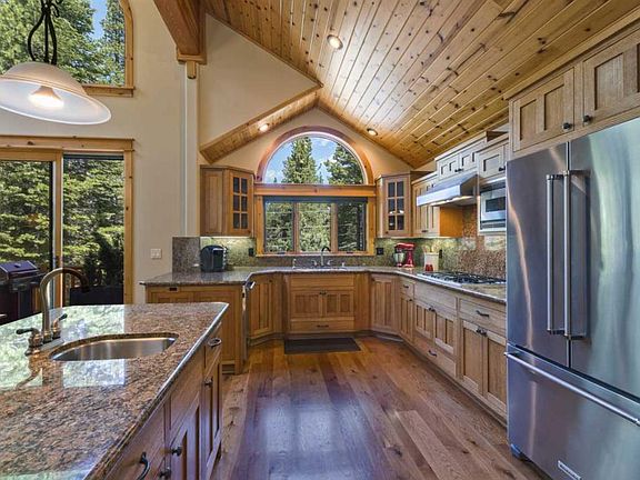 This wonderfully appointed, south-facing residence has a premier location overlooking the 16th green of Tahoe Donner's golf course on prestigious Swiss Lane. Complete with 2 master suites, 2 additional guest rooms, 4 baths, a rec room with a pool table and wet bar and a large loft overlooking the expansive great room, there is ample space for family and friends alike. A collection of pines provide the perfect blend of shade and privacy with an easement to the east adding to the ideal golf course setting.