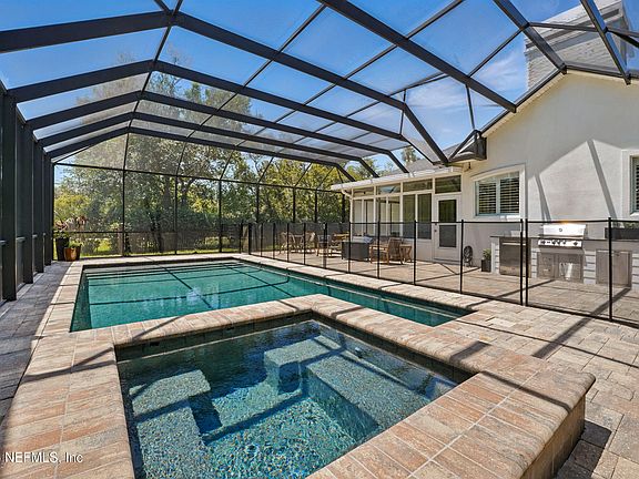 Screened-in poolSummer kitchenSunroom with pool tableOutdoor oasis