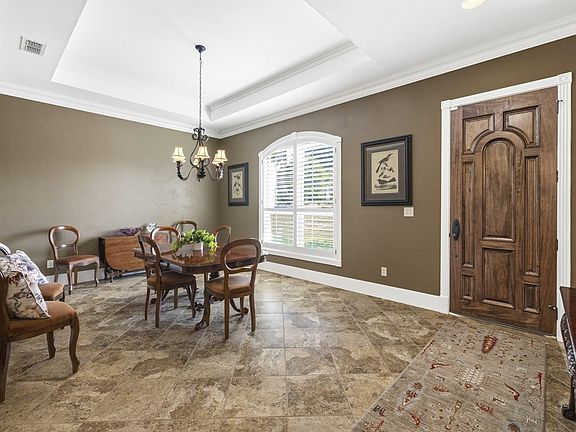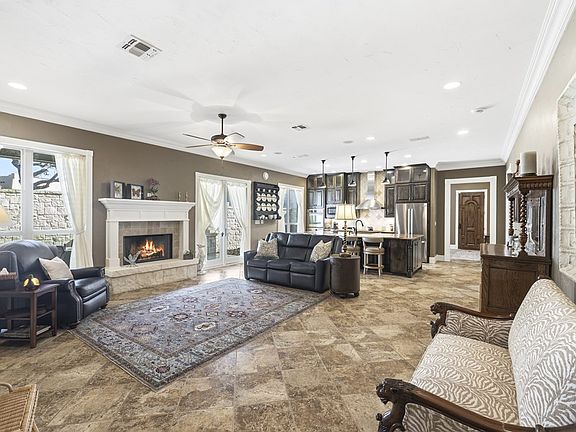 Step inside this beautifully crafted custom home, where thoughtful design and timeless finishes create a warm, welcoming story. Porcelain tile floors flow seamlessly through an open-concept layout, drawing you into a spacious family room centered around a charming wood-burning fireplace. The chef's kitchen is a true highlight, with alder cabinetry stretching to the ceiling, granite countertops, a magnificent 5' x 11' island with seating for four, RO filtered water, and room to gather. Ten-foot ceilings, 8' solid-core doors with antique hardware, wide crown molding & baseboards, and shutters add classic elegance, while modern updates—new HVAC in 2022, roof in 2017, water softener in 2022—provide peace of mind. The oversized 3-car garage features insulated doors, workshop area and a mini-split for year-round comfort. A serene side patio offers built-in grilling with granite counters for effortless entertaining. The primary suite includes a bonus room perfect for a custom closet, office, craft space, or gym, and a large spa-like walk-in shower. With home-run wiring, a 5.1 speaker system, and ADT Security System - this home blends comfort, craftsmanship, and convenience at every turn.