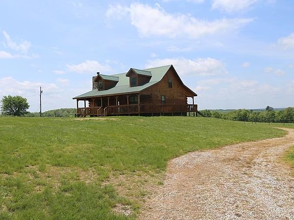 Missouri Ozarks Log home bordering Mark Twain National Forest. 85 acres m/l of wonderful Ozarks property is what you're getting with this fenced and cross fenced farm. Has a horse barn, and corrals, along with another older barn. Ready to farm! Home features hardwood floors, along with a Master Suite, offering a garden tub and showers, along with walk-in closets. It has an open floor plan with vaulted ceilings, and a covered porch. New concrete pad for walk out basement along with never been used Hot Tub ( negotiable ). Basement is left Primarily unfinished, with a bathroom, and utility room residing below. Recreation room along with 2 rooms that could be used for bedrooms. Private well (s) (2), and a view that is second to NONE!!