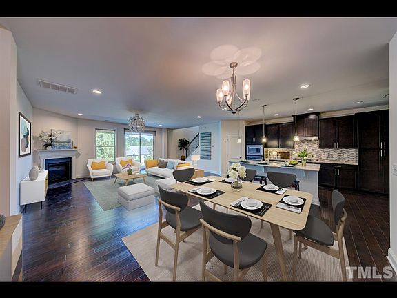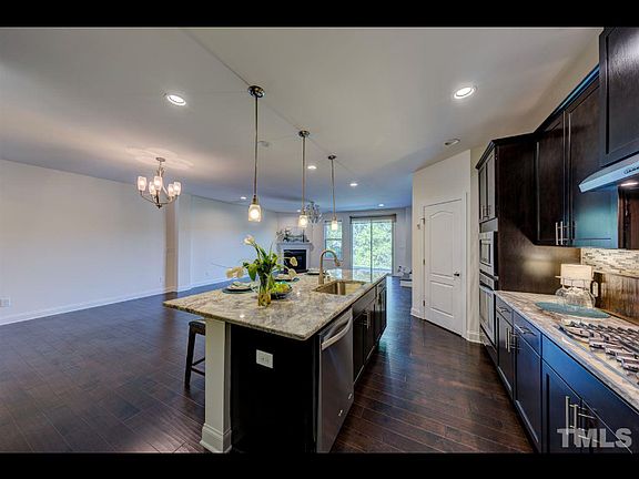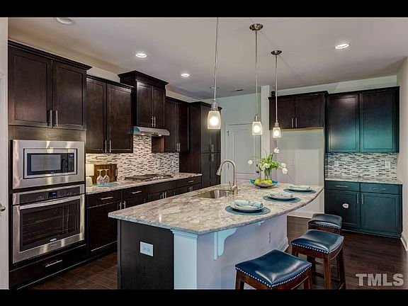Freshly painted immaculate west facing luxury town home at Green Hope Crossing. Wood flooring on 1st floor & stairs. Gourmet kitchen w/ GAS cook-top, GRANITE, SS appliances, pantry, centralized air conditioning, energy efficient, Ring Security system, attached 2 car garage & ceiling fans in living & all bedrooms. Large island opened to the family & dining room and wooded views. Large master suite with big walk in closet, tiled shower and floors. Loft area, Laundry rm, 2 secondary bedrooms each with walk in closets and Jack and Jill bath. Top rated non-capped schools, parks, shopping & community pool with additional parking. Garage includes extra storage racks.