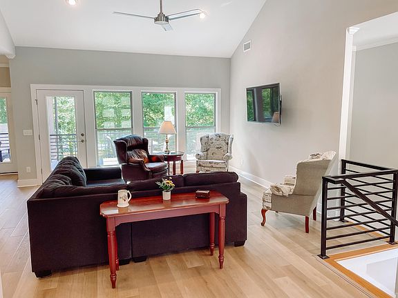 The lower level is perfect for guests & entertaining! It includes 2BR/1BA, an efficiency kitchen w/ bar & wine cooler, and a great room that opens onto a huge 26 x 18 covered patio that leads to the beautiful 32 x 15 saltwater pool and the lake.