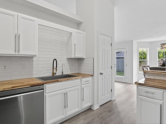 The kitchen has stunning butcher block countertops, new stainless-steel oven/range (that vents outside), a new stainless-steel dishwasher, a new stainless-steel sink and new fixtures. Seller is offering an allowance for a new refrigerator and microwave.