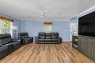 Waterfront homeWooden dockWrap around deckFlex spaceOpen-concept floor planWaterside deckOpen kitchen