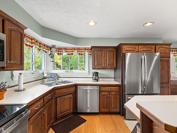 Situated at the end of the road and over looking the Lucas valley, this darling raised ranch has woods on one side and a great view from the covered front porch on the other! Many updates have been made to this home through the years both mechanically and cosmetically! Kitchen with maple hardwood floors, new stainless steel appliances and a large center island with breakfast bar. Kitchen open to the dining room which leads right into the living room. Three bedrooms on the main floor and an updated bathroom with separate soaking tub and shower. Fresh carpet and paint throughout. Walk out lower level with a fantastic family room with built ins, mud room, laundry, storage, half bath and garage. Great outdoor living spaces including a screen porch attached to the back of the home and over looking the woods. Well maintained and ready for its next owner!!!
