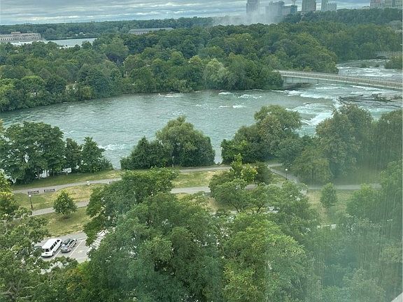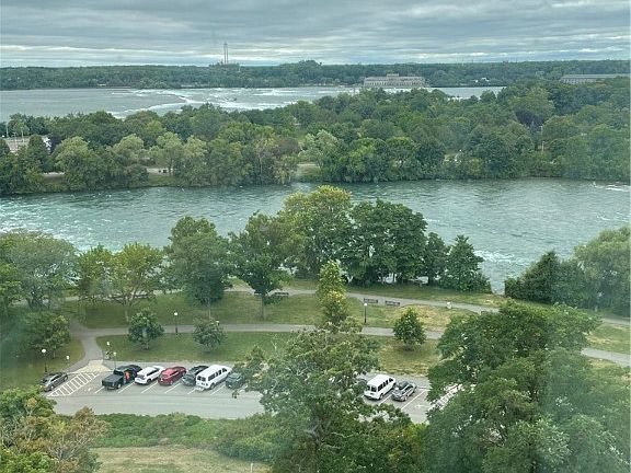 Spacious Penthouse Condo with a Panoramic view of the majestic Niagara River, Canada and beautiful sunrises. Completely updated two bedroom 2 bath condo. Primary bedroom with dressing area and full bath. Plenty of cupboards and closet space. Three season enclosed balcony adding additional living space. Enjoy the amenities of condo living offering same floor laundry room, community room, fitness center, plenty of open parking and a mini park with a gazebo. Minutes to walking trails, parks, restaurants, tourist attractions, Canada and the Casino. Rent includes maintenance fee, heat, electric and water. The Parkway Condos are a professionally managed secure building.