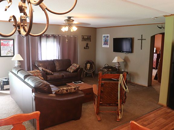 Well maintained, 3 bedroom, 2 bath double wide home. Walk into a large open layout kitchen/living room area with a good sized laundry room off the kitchen. Spacious master bedroom has a large attached master bathroom with walk in closet, double vanity, stand up shower and a separate tub. On the other side of the house are 2 guest bedrooms with walk in closets, a full bath, and an extra room that is perfect for a small office. The trailer sits on a large lot of about 23 acres of beautiful pasture land, 21 of which are fenced.