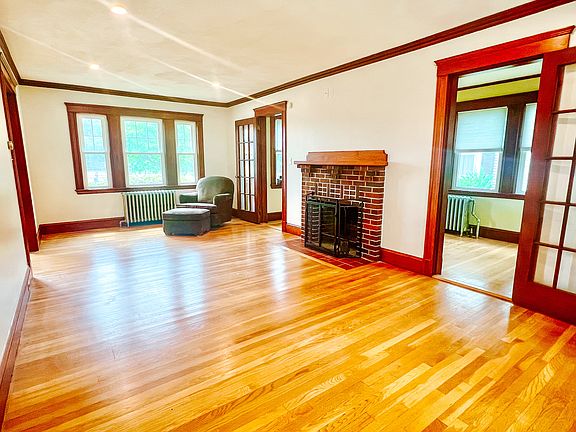 This lovely, bright single family is nestled in West Medford and includes 3-4 BRs, 1.5 baths, driveway & large fenced in yard, w/ detached garage & is a short walk to commuter rail station, Playstead Park, & the shops & restaurants of West Medford. Features include an entry foyer w/half bath, large LR w/fireplace with adjoining sunroom. The eat-in kitchen boasts plenty of cabinetry & counter space with gas range, which opens up spacious DR with built-in. Upstairs there are 3-4 bedrooms, full bath & 3rd floor bonus room for additional closet space, storage, or playroom. Other features include hardwood floors throughout, lots of windows, custom wood moldings, central AC. For outdoors, two decks, play structure, fenced yard, Mystic Lakes, Middlesex Fells, Playstead Park. Commuter rail goes directly to Boston's North Station. Buses to Davis Sq., Harvard Sq., Tufts, Haymarket (#96, #94, #326). Easy access by T to Tufts, Harvard & MIT & easy access by car to all highways. Pets considered. Tenant pays for water. Landlord maintains landscaping, and tenant is responsible For snow removal. First, 1/2 month security and one month broker fee paid by tenant