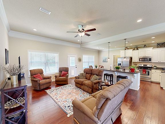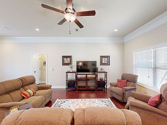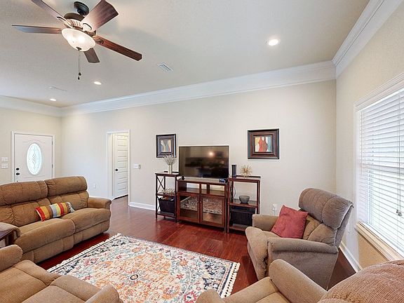 Country Feel but Close to Everything! Being One of the First in an Area has its Benefits!! No HOA and a Humongous Lot almost a 1/3 Acre! Room for Pool, Storage Barn or Anything you Desire! Very Quiet & Private with Terrific Covered Patio for Outdoor Living & Entertaining Space! Mature Trees, Black chain link Fence, Double Gate and backs up to Woods. Brand NEW ROOF! Lovely Curb Appeal, Beveled Glass Entry Opens to Grand Room and Spacious Dining Room. Beautiful Hardwood Floors and Custom Touches like Trey Ceiling and Textured walls. Awesome Kitchen continues the Flow, dark wood Cabinets, Tons of counterspace, SS Appliances, Brkfst Bar and Family Eating Space. Split Bedrooms are separated by Nice guest bath. Primary Suite is Good Sized with Spa like En Suite. Jetted Tub surrounded by Pretty Tile work. Sep Shower. Enormous Walk in Closet! Laundry with Barn Doors, Side Entry Oversized Garage with new Door and Windows. New Homes in the area Can Not Compare to this ONE! Lot Size and Price!! A Must See it Will Not Last Long!