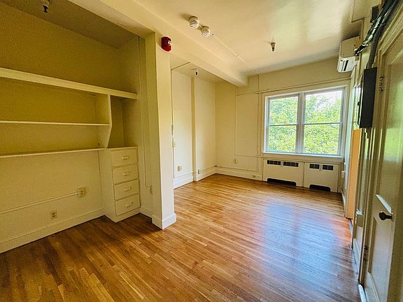 Efficiency, 1 Bath Apartment with locked entrance, onsite laundry, heat pump, a/c, hardwood flooring, refrigerator and stove. Cats only are permitted. Undergrad friendly. Non-smoking unit. Water/Sewer/Garbage service is included. Residents are responsible for all other utilities. Built in 1920.