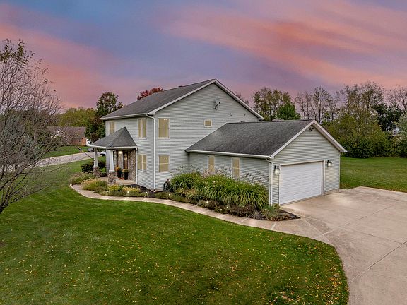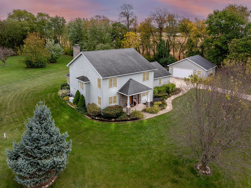Bring all your toys and cars to this exceptional property, which truly has it all! As you approach, you will be greeted by an expansive landscaped yard adorned with mature greenery. Oversized 2.5 car attached and 24x30 heated outbuilding (epoxy flooring, new paint, and new LED lighting). This home features stunning stone accents, solid core craftsman wood doors, and custom woodwork throughout, equipped with a whole house generator. Upon entering the foyer, you have access to a formal dining room or office with brazilian raw cherry hardwood throughout the main level. The open-concept living room and kitchen boast marble quartz counter tops, a stylish matching stone backsplash, inset cabinetry, and stone fireplace with custom built-ins. The kitchen also includes two pantries and sleek black stainless appliances, featuring a Bosch dishwasher. Enjoy your morning coffee in the sun room, which offers a view of the serene backyard. Ascend to the upper level, where you will discover two spacious bedrooms, a well-appointed bathroom, a laundry room, and a master suite fit for royalty, complete with a newly renovated master bath. This home provides ample space, including a recreation room in the basement featuring a wet bar, and an additional bedroom and bathroom. The basement offers garage access with a convenient mudroom. Step outside to find a brand new hot tub and a motorized retractable pergola with an attached weatherproof TV, making this backyard an entertainer's dream.This property is a must-see. Schedule your showing today and be sure to ask your agent for the comprehensive list of upgrades!