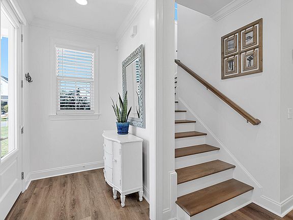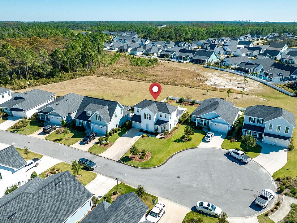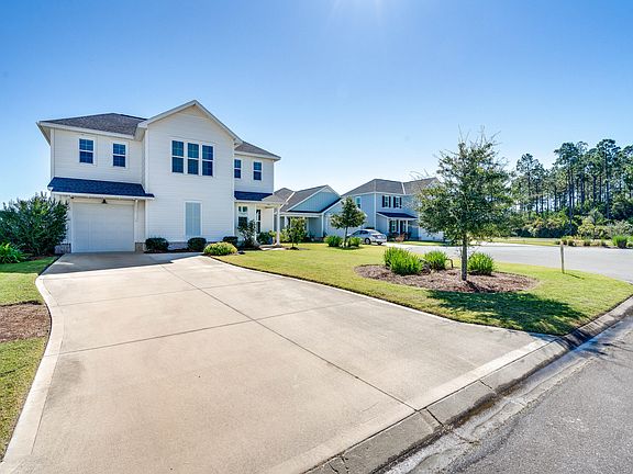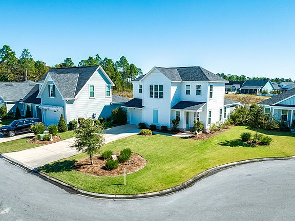 This Christopher plan is a charming coastal cottage built by Huff Homes in 2020. It offers 3 bedrooms and 2.5 bathrooms, with the primary bedroom on the first floor. This 2-story home situated on a cul-de-sac and occupying an oversized homesite measuring 7,752 s.f., provides for plenty of space to turn this backyard into your very own oasis with a pool/spa and cabana.Upon entering this beautiful well-kept home, you'll be greeted with plenty of natural light. This considerate floor plan is perfect for entertaining with the open-concept kitchen and living room, along with the designated dining area. Conveniently located on the first floor, the primary bedroom hosts views of the spacious backyard, an en-suite bathroom and a large walk-in closet. Upstairs, you will find a sitting room