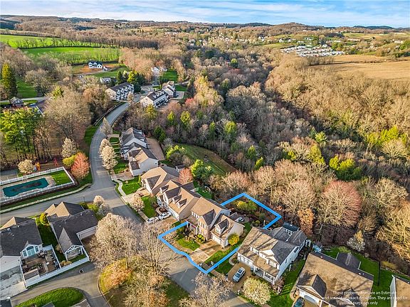 Presenting 151 Creek Side: a lovely, four bedroom home located in the sidewalk community of Sarver's Mill! You will love the home's curb appeal, with its inviting covered front porch and beautiful brick detailing. When you enter the home's spacious foyer, you'll immediately note the gleaming hardwood floors flowing throughout the main level. The open concept kitchen features ample cabinetry and prep space, and opens to your family room and dining room. The kitchen leads out to your peaceful patio and wooded lot. The main floor also features a private home office! Upstairs you will find 4 spacious bedrooms, two full bathrooms, and laundry. The master suite has a vaulted ceiling, walk in closet, and dedicated en suite with double vanity, walk in shower, and soaking tub. The second bedroom is a standout as it offers a great amount of space. Large unfinished basement is pre-plumbed. Sarver's Mill has 2 community pools, clubhouse, and is near the elementary school. Low taxes!