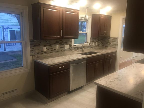 Beautiful single family home in desirable Pinecrest neighborhood. Completely remodeled with brand new windows, heating and central AC. Custom kitchen with corian countertops, stainless steel appliances and stunning tile work. The large living room has a working fireplace and gleaming hardwood floors that flow into three bedrooms each equipped with ceiling fans and closets. Large dining area includes extra family room/office space. Garage is 1 and 1/2 cars with garage door opener, attic storage and entry into house. A large unfinished basement provides plenty of storage and a washer and dryer. The small backyard will be easy to maintain and has a small cement patio. Brand new cement work goes all around side of house and ends at a lovely front porch to sit and watch the sun set in a quiet peaceful setting. Tenant is responsible for cutting grass, clearing snow and raking leaves. The tenant also pays for all utilities except sewer and water.