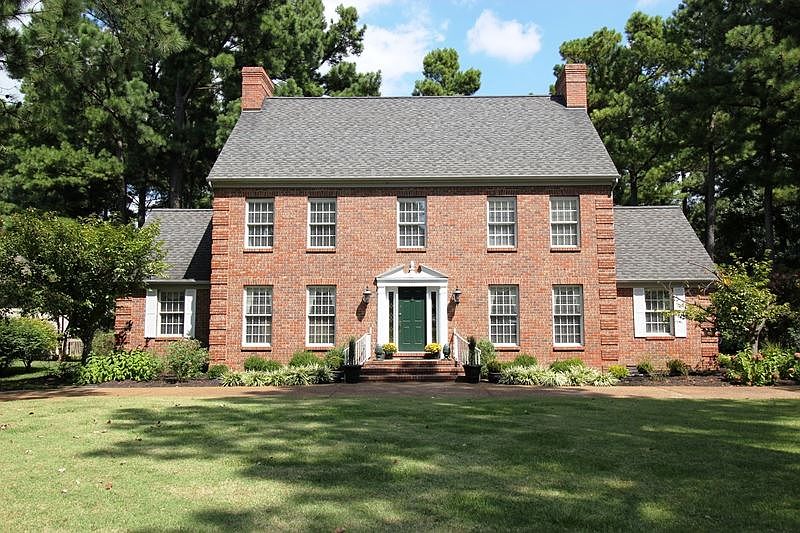 LOVELY AND TRADITIONAL BRICK GEORGIAN COLONIAL graciously sits on beautiful wooded lot in The Pines neighborhood. This home offers lots of living space and generously sized rooms including 5 bedrooms & 3.5 baths. Each end of the home is flanked by beautiful rooms boasting bayed windows, fireplaces, vaulted & beamed ceilings. Outside, you'll find a circle drive, side porch, patio, large privacy fenced backyard, & irrigation system. This family friendly neighborhood is centrally located.