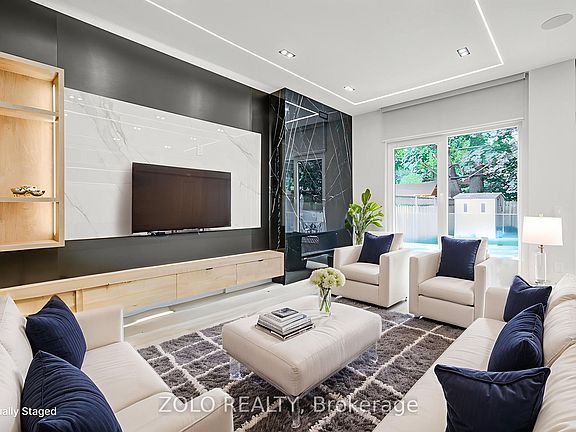 Spectacular Cedarvale Residence. A rare offering of modern sophistication and timeless elegance in one of Torontos most coveted neighbourhoods. This expansive 3-storey family home with a private elevator serving all four levels offers over 4,600 sq.ft. of luxurious living space (3,250 sq.ft. above grade + finished lower level), designed with meticulous attention to detail.The main floor features soaring 10-ft ceilings, an airy open-concept living/dining space, and a gourmet chefs kitchen with a large centre island, retractable breakfast table, and walk-out to the backyard. The family room is anchored by a stately gas fireplace and custom built-ins, framed by oversized windows overlooking greenery.Upstairs, the second floor includes three spacious bedrooms, a sleek home office with glass doors, a practical laundry room, and furnace room for comfort and efficiency. The third floor retreat is magazine-worthy: an entire level dedicated to the primary suite (or a private space for teens/in-laws) featuring a stunning ensuite, oversized walk-in closet, sitting/make up area with mini-bar, and a balcony with green and skyline views.The lower level extends the living space with a full kitchen, guest/nanny suite, 3-pc washroom, additional laundry, radiant in-floor heating (roughed-in), and a walk-out to the backyard ideal for gatherings or multi-generational living. Front and backyard landscaping finishes are left for future buyers to customize!