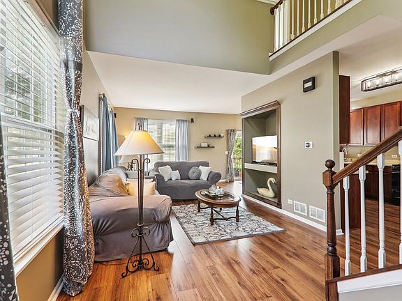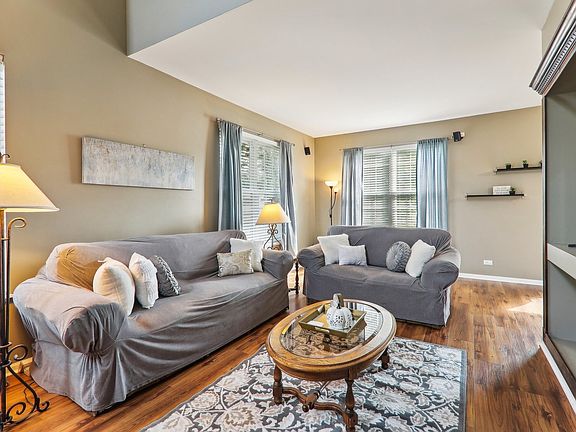 BEAUTIFUL 2-STORY END UNIT! 2 BEDROOMS PLUS LARGE LOFT, 2-1/2 BATHROOMS, FULL BASEMENT WITH ROUGH-IN PLUMBING FOR A FUTURE BATH. VAULTED PRIMARY SUITE WITH A CEILING FAN/LIGHT FIXTURE W/REMOTE, UPDATED PRIMARY BATH W/SEPARATE SHOWER AND SOAKER TUB, AND A WALK-IN CLOSET WITH BUILT-IN CUSTOM QUALITY "ELFA" SHELVING ORGANIZERS. SPACIOUS LIVING ROOM INCLUDES BUILT-IN SURROUND SOUND AND SPEAKERS. LARGE LOFT FEATURES A BUILT-IN OFFICE WORK CENTER WITH CABINETRY, COUNTER TOP, AND SHELVING. UPGRADED WOOD RAILINGS, UPGRADED WHITE PANEL DOORS AND TRIM. KITCHEN WITH BUILT-IN DISHWASHER, BUILT-IN MICROWAVE, BUILT-IN GARBAGE DISPOSAL, SELF CLEANING OVEN/RANGE, REFRIGERATOR WITH ICE AND WATER SERVICE, PANTRY, AND AN EATING AREA THAT FEATURES SLIDING GLASS DOORS TO THE DECK W/PANORAMIC VIEWS! CONVENIENT 2ND FLOOR LAUNDRY RM W/WASHER AND DRYER. UPDATED LIGHTING, UPDATED MASTER BATHROOM. UPDATED POWDER ROOM, NEW CARPETING AUGUST 2024, WOOD LAMINATE FLOORING. CENTRAL AIR, AUTO GARAGE DOOR OPENER. ALL CLEAR ALL WEATHER FRONT STORM DOOR. SMART RING BELL. NEST THERMOSTAT. 2 CAR ATTACHED GARAGE WITH AUTO DOOR OPENER & EASY ACCESS DRIVEWAY. PREMIUM LOCATION, BACKS TO WIDE OPEN SPACE WITH SCENIC VIEW FROM THE DECK AND LOFT. CONVENIENTLY LOCATED CLOSE TO I-90 AND BIG TIMBER METRA. TIMBER TRAILS OFFERS MILES OF WALKING/JOGGING BIKE PATHS WITH SEVERAL TOT LOTS, AND GAZEBO REST SPOTS.