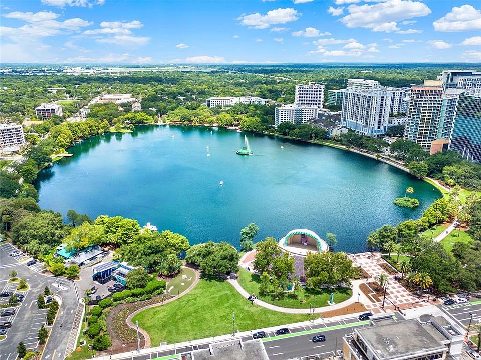 The best location and view in Downtown Orlando! You are in the middle of everything fun when you live here. Huge balcony for entertaining and relaxing. This unit overlooks the pool, Lake Eola, and the City skyline. Walk to all the fantastic events, parks, and superb dining. Dr. Phillips Performing Arts Center, SunRail, Orlando Library, and Orange County Courthouse and municipal buildings are all within walking distance. The condo has been freshly painted and has new appliances. It has the coolest washer/dryer combination, saves space and energy! The utility bill is super low because the association pays for the water, cooling/heating, garbage, and sewer. Solid concrete floors and walls, so you never hear a neighbor. This condo comes with TWO DEEDED PARKING SPACES. Huge community room and mailroom with secure package storage. It is a full gym, not just a fitness room. Yonder out by the pool and enjoy lounge chairs and a cabana bar, all overlooking Lake Eola. Owner is motivated. Easy to see, easy to enjoy!